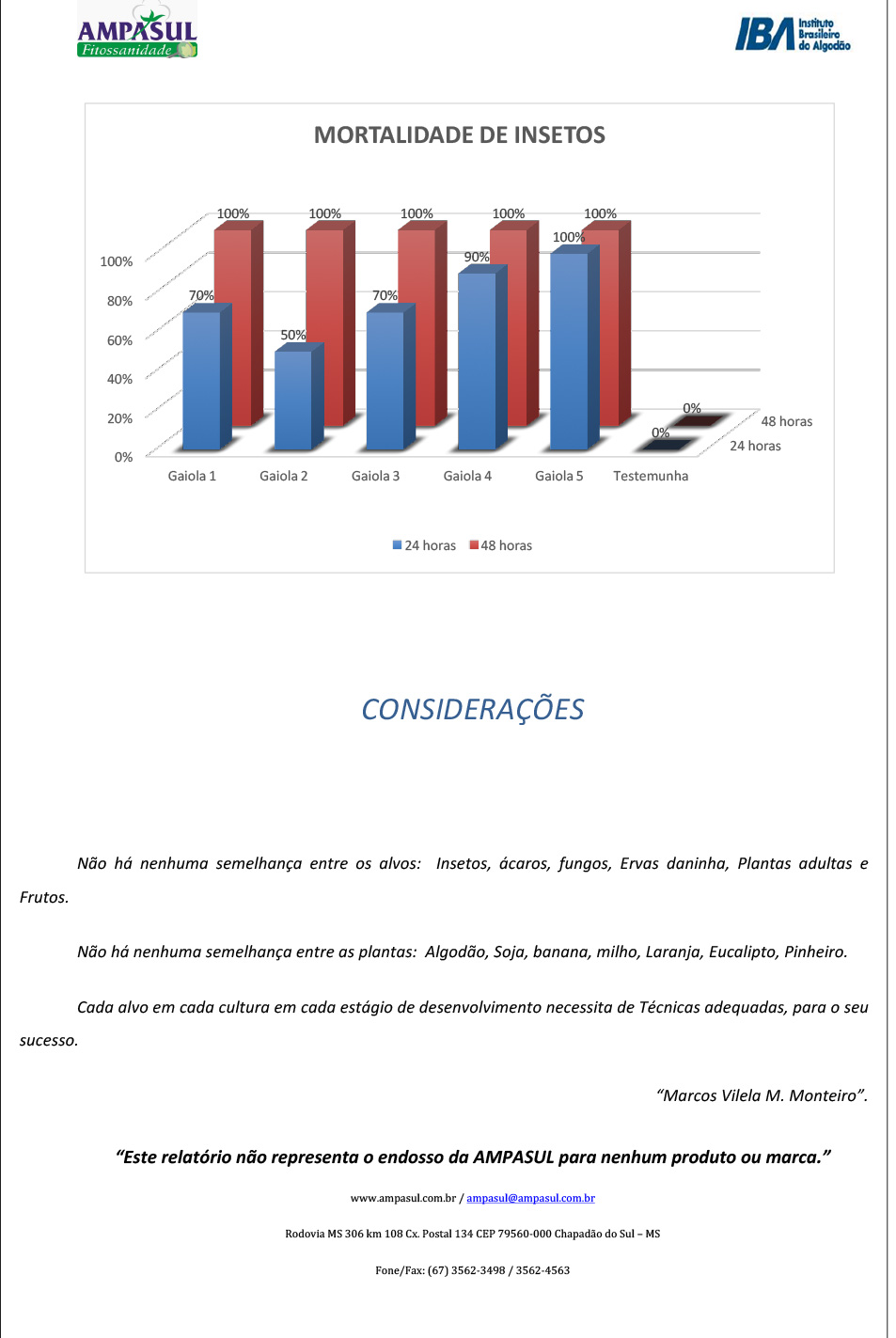 Testes realizados na Fazenda França do Grupo Schlatter pela equipe de Tecnologia de Aplicação da AMPASUL descritos no Relatório Nº 10 de Julho de 2016 da Associação